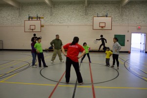 An SOBC volunteer coach lead children and their families through exercises