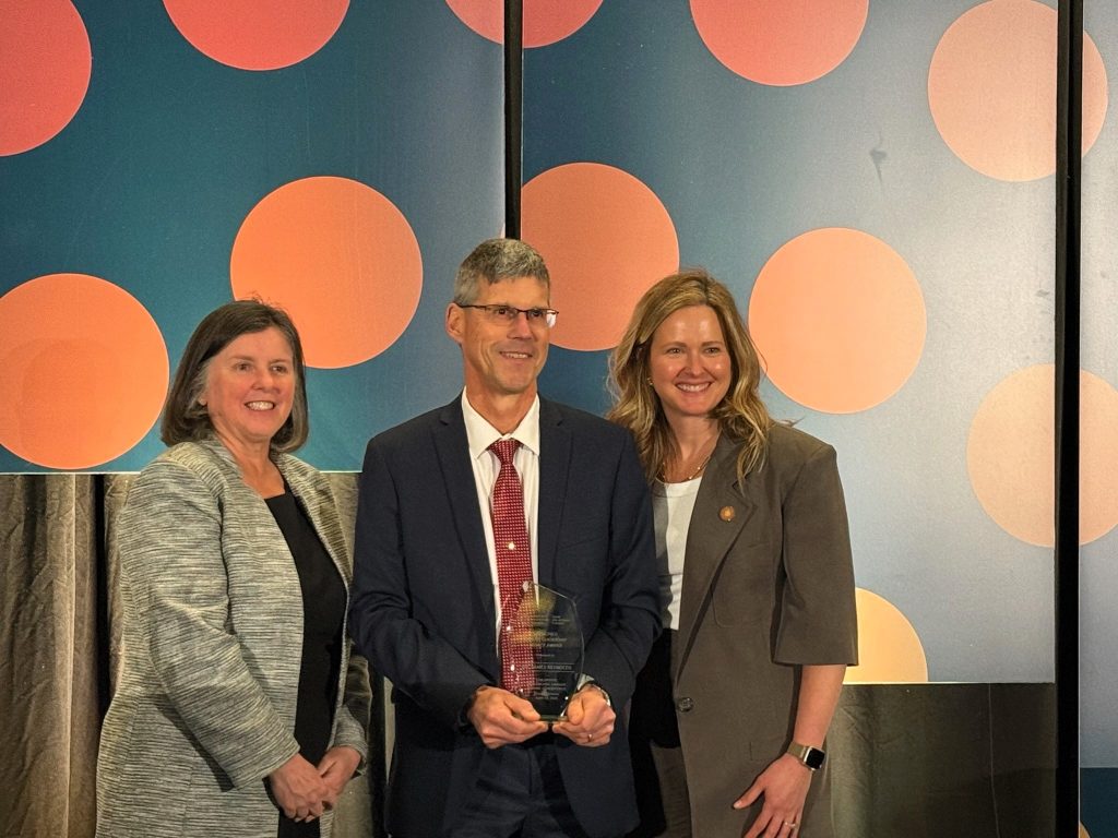 Dr. James Reynolds with IWK CEO Dr. Krista Jangaard (left) and Children’s Healthcare Canada (CHC) President & CEO Emily Gruenwoldt (right) at the 2025 CHC Conference